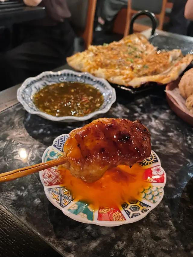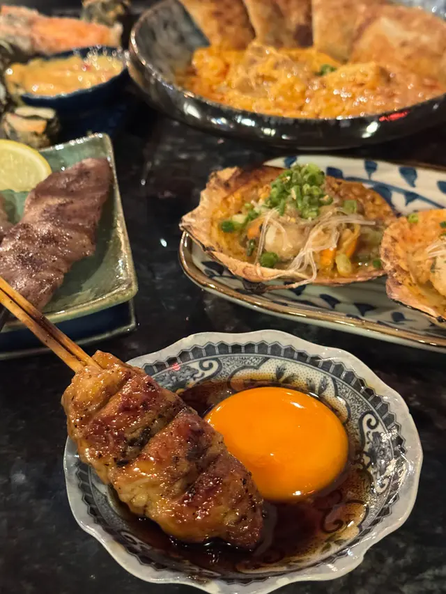 好耐之前食過旺角分店記得印象中係唔錯的~最近去開尖沙咀發現原來呢邊都開咗間分店!正好有一排無食串燒就決定試下🤤當日星期六晚勁full house去到都要等咗10分鐘左右先有室內位~店面都幾大下~仲有半室外坐位秋冬季無咁熱嘅時候喺呢度飲返杯食吓串燒都應該幾chill!串燒種類都有非常多🍢分咗不同價位串燒區分~最平只係$10串嘅都有!但$10至20區域的串燒必需點兩串起跳的⚠️試咗下面呢d串燒都唔錯~😋👍🏻鹽燒雞中翼鹽燒和牛牛小排鹽燒鮮雞皮蒜蓉燒蠔豚肉荔枝卷免治雞肉棒蒜蓉欖角燒蟶子蒜蓉菜脯燒元貝咖喱牛舌手抓餅鹽燒牛舌芯手打檸檬茶特別要講‼️墨魚滑+紫菜+蝦呢個一定要試✅外邊脆脆嘅紫菜包住咗墨魚滑同蝦肉!配埋千島醬超級惹味啊🥹👍🏻呢個非常之有驚喜~…Read More