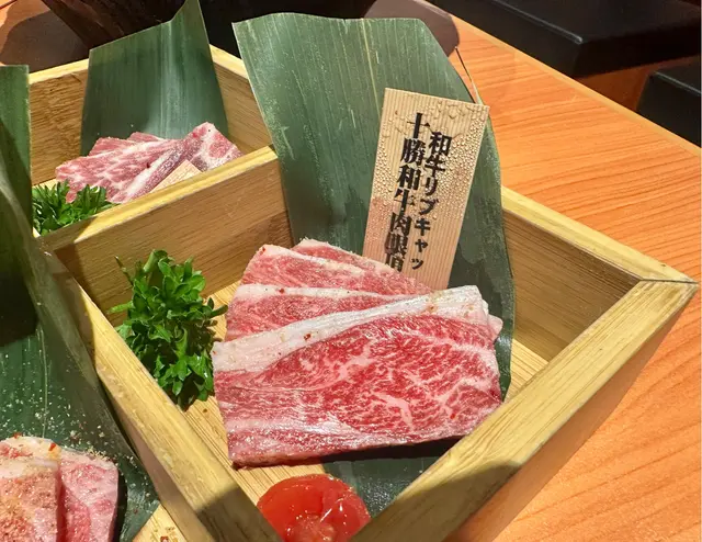 今次我們來到位於元朗的日式燒肉餐廳——九丁目燒肉料理。這家餐廳的特色不僅僅是美味的食物,更是營造出濃濃的日本氛圍。從門口開始,一排排的日式祭典燈籠就已經讓人感受到日本風情。進入餐廳內部,木質的裝潢和和風的裝飾讓人倍感舒適,加上窗外還有條掛滿燈籠的橫丁小巷,可以說是元朗最有日本氣氛的烤肉店了,坐在燈籠下享受美食,感受著濃濃的日式風情,真的是一種非常棒的體驗。我們點了九丁目燒肉料理的極盛二人套餐,一共12道菜,都只是$888兩個人,非常抵食!蜜桃蟹子沙律其中前菜蜜桃蟹子沙律色彩繽紛,酸甜適中,是個開胃的好選擇。最讓人期待的當然是燒肉了,九丁目燒肉料理選用的是高級的和牛,包括和牛眼芯、十勝和牛貝肉、十勝和牛肉眼頂、十勝和牛橫隔肌。和牛眼芯不僅鮮嫩多汁,而且細緻的肉質配合獨特的油花分布,肉質細緻無渣,入口即化,讓人感受到肉質的絕妙口感。十勝和牛貝肉則是和牛的肋肉部位,肉質柔軟而多汁,帶有自然的甜味,吃起來不會有膩感,令人回味無窮。十勝和牛肉眼頂和十勝和牛橫隔肌都是和牛的高級部位,肉質豐富,口感豐富多樣。肉眼頂是肌肉部位,口感緊實有彈性,有嚼勁,肉質細嫩,而橫隔肌則是脖頸部位,肉質柔軟細緻,入口即化。套餐也有生菜,這樣就可以把燒肉夾在生菜裡面,加上醬汁夾來吃,真是一流。米豚五花腩五花腩肥瘦分佈均勻,肉質鮮嫩多汁,口感非常滑嫩,且不會過於油膩。當咬下一口時,可以感受到肉質的細膩和柔軟,搭配上燒烤的烤香味,讓人一試難忘。海鮮方面還有北海道魷魚和日本岡山蠔,全部都十分鮮美。魷魚肉質鮮嫩,燒烤後更帶有微微焦香,讓人不自覺地一口接一口。而燒日本岡山蠔則是十分新鮮美味,蠔身肥厚鮮甜,燒烤後仍然保持了豐富的汁液,入口鮮甜多汁,讓人意猶未盡。在飲品方面,推薦忌廉綠茶紅豆冰和柚子茶,味道清新怡人,消暑解渴。還有餐廳的和風雪糕,我們選了牛乳和綠茶口味,味道非常純正,而且盛器都是很冰冷的,雪糕不易溶,雪糕底部還有一些紅豆蓉,有驚喜,讓人一試難忘。最後還有紫菜珍珠飯,珍珠飯是與油脂重的和牛肉最佳搭檔,口感彈牙有嚼勁,非常適合和油脂重的和牛肉搭配,讓人吃得非常過癮。總的來說,九丁目燒肉料理是一家非常值得一試的日本燒肉店。餐廳環境非常有日本氣息,除了室內的木系和風裝潢外,還有室外掛滿燈籠的小巷,給人一種穿越到日本的感覺。食物方面,特別推薦他們的極盛二人套餐,牛肉質感柔嫩,口感極佳,性價比高。餐廳的服務態度也很好,讓人感到非常的舒適。總的來說,這是一家值得再次光顧的餐廳。…Read More