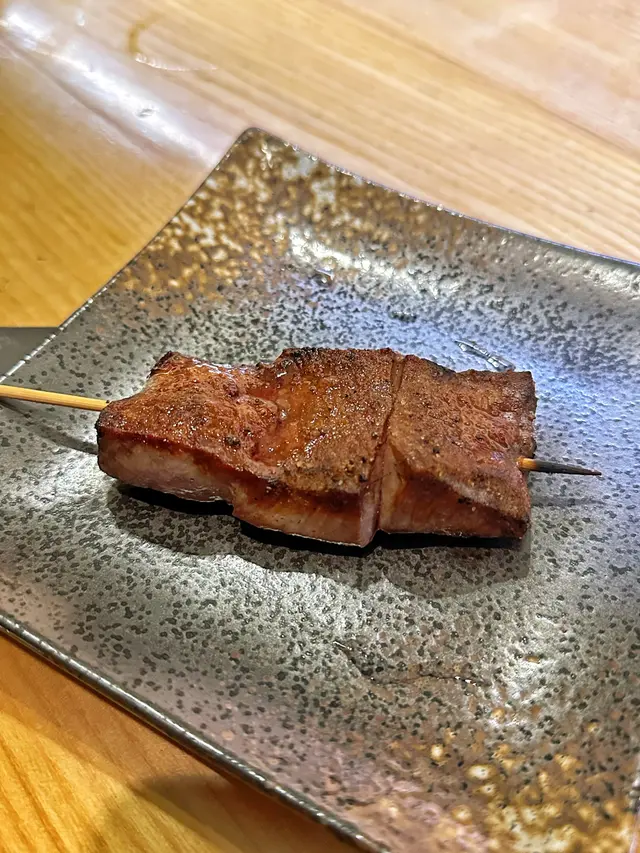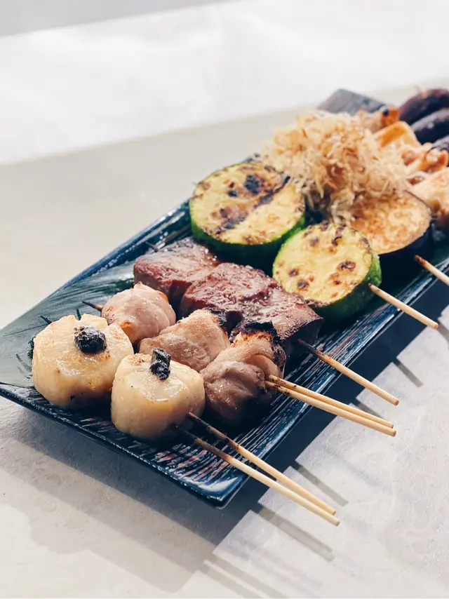 晚上去左銅鑼灣食串燒居酒屋開放式既廚房見到師傅係到燒串燒先上左份前菜係蔬菜切條有椰菜片、青瓜條同紅蘿蔔條肉類串燒叫左厚切牛舌、荔枝豬肉卷仲有大蔥雞肉串同埋鹽燒雞腿肉個人幾鍾意厚切牛舌同鹽燒雞腿肉厚切牛舌燒得香口肉質中間仲Keep到好嫩雞腿肉用簡單調味就足夠食落雞肉都幾多肉汁海鮮串燒叫左黑松露帶子帶子肉厚身,黑松露醬香氣十足蔬菜串燒叫左日本小甜薯仲有蒜香脆玉瓜、茄子同粟米茄子片燒之前浸左味噌汁,好入味叫粟米要兩份起,因為原條燒所以食落幾多汁同好香甜熟食叫左炒雜菜同牛肉稻庭烏冬炒雜菜炒得幾乾身,烏冬口感煙韌整體食物水準唔錯,可以一試!…查看更多