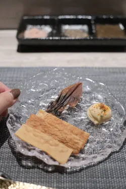 ⛇☃︎ 匠人料理鐵板 $438 -$538❅ 前菜火龍果配新鮮沙律菜打開序幕烤鱈魚片和墨魚乾配沙律醬讚冬菇秀珍菇的茶碗蒸非常嫩滑Kicking off the feast with vibrant dragon fruit mingling with fresh 𝐬𝐚𝐥𝐚𝐝🥗 Grilled cod fillets, drizzled in tangy salad dressing? Chef’s kiss perfection🤍 And don’t get me started on the ultra-silky chawanmushi studded with enoki mushrooms🍄🟫❅ 銀鱈魚魚肉和皮分開的煎法提升口感魚肉細膩兼柔滑搭配牛肝菌醬Separating the 𝐜𝐨𝐝 meat from the skin for frying amps up the texture game — crispy edges meet impossibly tender, silky fillets that glide like velvet🐟 Paired with an earthy porcini sauce, it’s a harmonious hug for your taste buds✨❅ 廣島蠔金黃色的蠔肉肥美飽滿挺焦脆搭配煙肉櫻花蝦增添鹹香層次Golden-hued 𝐨𝐲𝐬𝐭𝐞𝐫, plump and bursting with briny goodness, fried to that irresistible crispy edge🦪 Paired with smoky bacon and delicate sakura shrimp for layers of salty😆❅ 原隻虎蝦廚師表示分蝦大法將頭身分開蝦肉爽脆彈牙切開哂方便食用Ultimate 𝐭𝐢𝐠𝐞𝐫 𝐩𝐫𝐚𝐰𝐧 split, parting head from body like a culinary divorce that amps up the flavour fireworks! Snappy prawn flesh with that perfect bouncy chew, pure seafood sorcery🦐❅ 時令鐵板配菜美國牛板腱充滿牛香和油脂感加拿大羊架肉質有咬口但不韌𝐁𝐞𝐞𝐟 𝐛𝐥𝐚𝐝𝐞 brimming with that intoxicating beefy aroma and luscious, fatty richness that melts on the tongue🥩 Paired with Canadian lamb rack — tender yet with just the right chew, never a hint of toughness🐑❅ 炒飯採用蘭黃蛋炒飯粒粒金黃通透混合肉粒蔥粒增添鹹香很出色𝐅𝐫𝐢𝐞𝐝 𝐫𝐢𝐜𝐞 elevated with lush eggs and every single grain shimmering golden🥚 Tossed with savoury meat bits and punchy green onion flecks for an umami-salty explosion that’s straight fire🥰❅ 炒雜菜炒雜菜包含椰菜小棠菜蘿蔔絲蔬菜清甜香口唔油膩份量十足Tender baby 𝐛𝐨𝐤 𝐜𝐡𝐨𝐲, and zesty shredded 𝐫𝐚𝐝𝐢𝐬𝐡, all bursting with natural sweetness and fresh crunch😚 no greasy aftertaste in sight!!❅ 湯昆布湯清香醇厚帶甜鰹香風味最後並以益力多雪糕作為收結Kombu dashi 𝐬𝐨𝐮𝐩 steals the finale, crystal-clear and profoundly aromatic✨ Capped off with a cool, tangy Yakult 𝐢𝐜𝐞 𝐜𝐫𝐞𝐚𝐦 swirl for the ultimate probiotic-pampering close🤤————————————————————————————菊月町 (觀塘)觀塘鴻圖道23號利登中心地下1號舖…查看更多