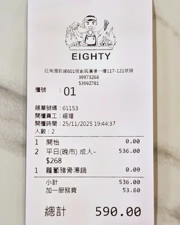 旺角🚇創興廣場呢間八拾台式火鍋🍲燒烤放題結合咗火鍋同燒烤🔥兩大元素,餐廳以木色🪵為主調,環境簡約舒適,空間開放寬敞✨,加上一般火鍋放題高質嘅多款火鍋配料,🤩真係幾有驚喜。我哋揀咗蘿蔔豬骨湯鍋🥣絕對係明智之舉,湯色清澈,豚骨香氣十足🍖,蘿蔔甜度恰恰好,一啖下去即能品🥄出湯底的鮮度同用心程度。清甜不膩,可以好好品嚐到各式🥢火鍋配料嘅鮮味。牛肉🐂部分,特上牛小排油花分佈豐富均勻🥩,肉香層次分明;美國安格斯牛板腱質感細膩,嫩度一流💯,涮幾秒即達完美火候;美國封門柳肉感十足,咬勁爽脆😋;美國特級牛肉則係驚喜之選,品質不遜於其他款式🥰,CP值爆錶。呢度嘅🌊海鮮款式都比我預期中豐富,大大隻嘅蠔🦪肉質飽滿肥美,蠔香濃郁,係幾驚喜;白鱔🐟鮮活彈牙,口感一流;蟶子肥美好鮮味,而且都幾大隻⭐;仲有唔同款嘅蜆各有特色。👏海鮮選擇豐富,質素又幾高,十分之唔錯👍。自助區配料有🤩驚喜,各款特色火鍋配料琳琅滿目,由🐓內臟、海鮮🦐、蔬菜到🐖丸類、菇類🍄應有盡有。多款串燒任食更係亮點✨,每一串都用心製作🍢,燒功火候講究,款式亦都唔少😍。熟食區選擇都好多元化,麻辣🦞小龍蝦肉質飽滿鮮甜🌶️,泰式炒聖子香氣撲鼻,調味適中;🇹🇭泰式拌雜錦海鮮清新爽口✨。飲品方面誠意十足🥤,除咗一般飲品之外仲有多款罐裝瓶裝啤酒任選🍺,加上 SAPPORO 同 1886 生啤,同埋檸檬味真露🍋,真係火鍋同埋串燒嘅好拍檔🤝。雪糕區提供多款雪糕🍨雪條選擇,這部分唔算太豐富❄️,不過都足夠嘅😊。…Read More