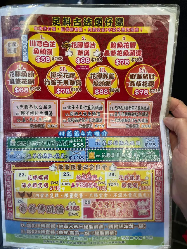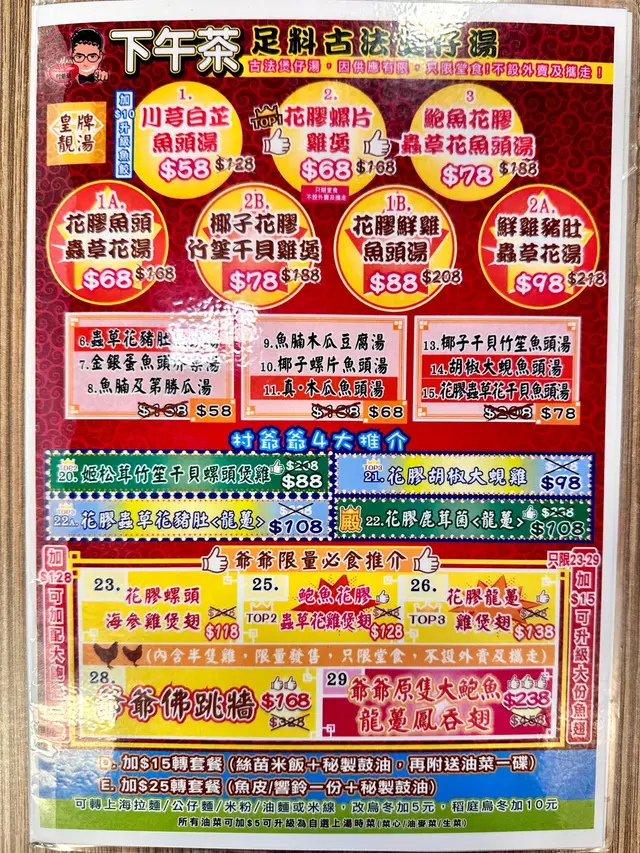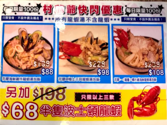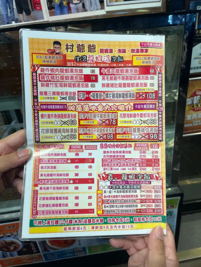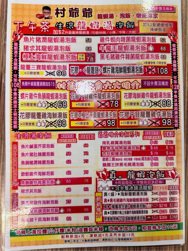 村爺爺龍蝦湯.泡飯.燉湯專家 (Yau Ma Tei) URL: https://s.openrice.com/QrKS0Za0700 Add.: G/F, 72 Portland Street, Yau Ma Tei, Hong Kong Tel.: +852 63956703
