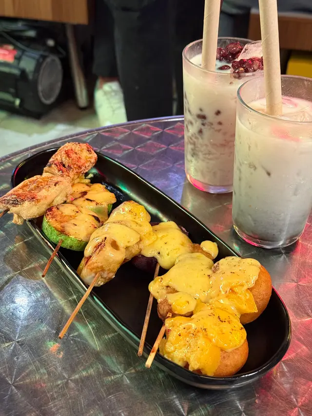 📍呢間串燒店散發出滿滿港式情懷,招牌都用上港式花牌,離遠已經見到👾除咗裝修有好多香港標誌性擺設🪩仲推出咗個維他奶聯乘串燒套餐, 維他奶就話飲得多啫!🫣🌀 維他奶芝士系列套餐配合返維他奶大人細佬都啱既形象,食物都好多元🙋🏻♀️ 6款維他奶芝士串燒包括咗免治雞肉條、芝士年糕、翠玉瓜、獅子狗、豆卜、小甜薯🙈 淋上厚厚一層維他奶芝士自家製醬汁,d 醬汁多到好似瀑布咁🤫 每一款都燒得幾香口,我最鍾意免治雞肉條! 🌀 套餐仲會包3款小食- 🔅 原條蒜香燒茄子: 朋友表示茄子肉質軟嫩,超大方落勁多蒜蓉,蒜蓉香滲入每一啖🔅 鹵水牛舌: 鹵水香味好明顯~墊底有一大塊蘿蔔,滲滿鹵水香又夠清甜🔅 厚燒豬五花肉: 五花肉燒至外層微焦,肥而不膩。食落有少少炭香,醬汁甜甜地好開胃 🌀 蒜蓉燒蠔 6隻 蒜蓉燒蠔有6隻大大隻🦪 採用大量蒜香提升鮮味,朋友表示蠔味十足, 但要就住叫因為d蠔都好飽! 🌀 混醬薯條 係街頭版 shake shake薯條🤩 呢個好大推🤣 將裝有芝麻及糖既調味粉灑入shake shake 袋,配合埋薯條本身鹹香,味道幾得意 🌀 豬大腸 & 豬護心肉 & 蜜糖燒粟米 & 陀地醉燒豬頸肉 串燒全部都烤得好有火喉,蜜糖燒粟米清甜多汁,豬護心肉就偏乾身少少〰️🌀 唔L同沙嗲牛麵 聽說是店家招牌,朋友忍唔住叫咗🙊 究竟同常餐沙嗲公仔麵有咩唔一樣❓ 餐廳加重咗沙嗲濃郁度,辣度都大提升,食落香濃惹味,牛肉一片片份量都唔少 🌀 維他奶奶凍黑芝麻冰 & 維他奶 維他奶搭落芝麻味又幾好! 奶凍增添咗口感,飲落清爽又有層次😙 樽裝維他奶情懷滿分…Read More