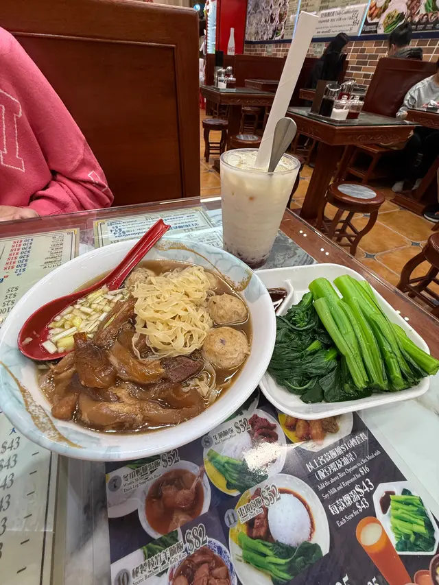 肥仔麵家😋😋😋港式文化銅鑼灣繁華鬧市、川流不息、波斯富街電車路旁、被高掛黃色招牌吸引眼球、港式麵檔、以傳統中式桌椅、寬敞舒適、有特色😁✨全日粉麵套餐柱侯牛腩河粉+油菜+凍檸茶鮮嫩的牛腩炆煮至入味、搭配濃郁的柱侯醬、香气四溢、河粉滑爽、吸收了肉汁的精華、口感豐富、令人回味無窮😋✨原汁牛肚(小)原汁牛肚選材新鮮、精心燉煮、保持肉質軟腍有嚼口、湯汁濃郁、鮮香四溢、令人垂涎🤤、滿滿生菜、錦上添花!✨淨雲吞雲吞皮薄餡鮮、包裹大大隻蝦球、豬肉粒、湯底清甜可口、仲有生菜🥬、每一口都滑嫩、令人陶醉,完美的傳統風味👍🏻✨淨鳳城水餃薄薄外皮包裹鮮美餡料、餡料豐富、有豬肉、鮮蝦仁、冬菇、木耳、竹筍等⋯肉質清爽甜美、搭配新鮮生菜、清甜上湯底、口感豐富!✨凍豆漿濃郁豆香、清甜、營養豐富👍🏻✨酥炸雞翼大大隻雞中翼炸至金黃、酥脆內嫩、不油膩、特色南乳醃漬、香味濃郁、醇厚的調味充滿誘惑!✨酥炸蝦卷蝦卷炸至外皮金黃酥脆、內餡鮮味豐富、蝦膠與香料、完美結合、口感層次分明、蘸點甜酸醬、滋味又惹味😍肥仔麵家銅鑼灣波斯富街84號地下港鐵銅鑼灣站B出口、步行約3分鐘…查看更多