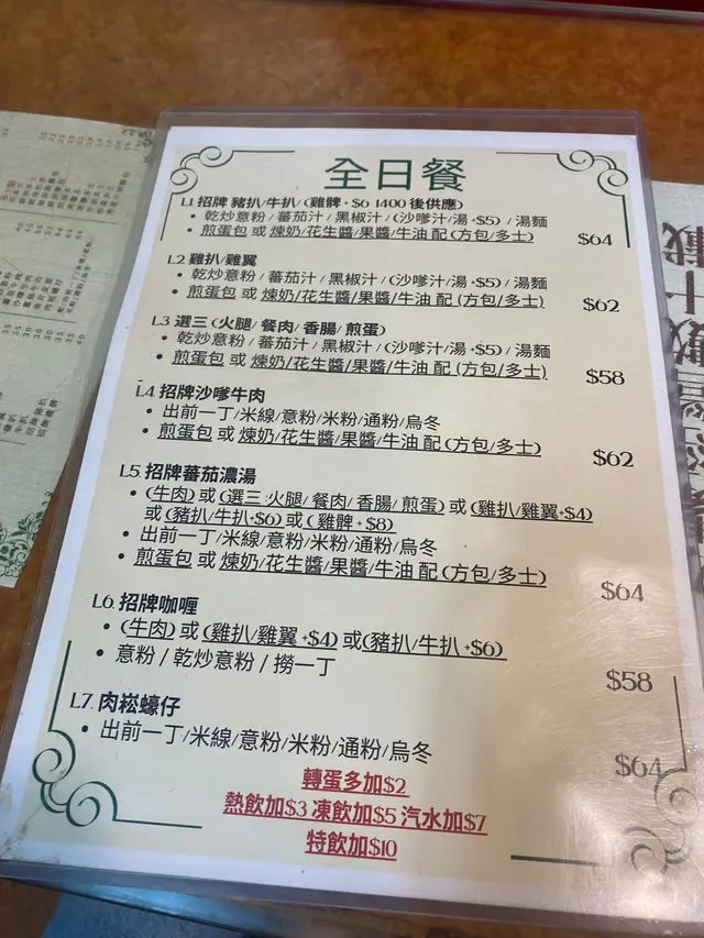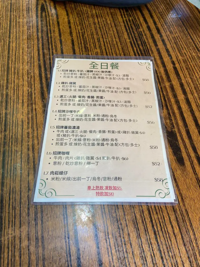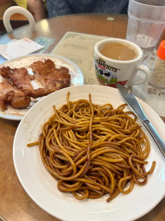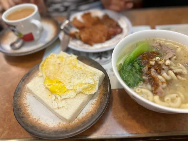 Chef Ecy’s Dining Experience:🥰 Food | Service | Easy Access | Price | Easy Parking 🙂 Ambience😠 Pet Friendly | Corkage Fee | Cake Cutting Fee | Wheelchair Friendly | Restroom CleanlinessThis iconic Cha Chaan Teng 茶餐廳 is a one-of-a-kind establishment in Hong Kong with a long history. It's especially famous for its deep-fried pork chop, drumsticks, and French toast.Be aware that it's a very small, cramped shop with only a few tables. Due to poor ventilation, you'll likely leave smelling like the kitchen. Also, there are no restrooms inside.Despite this, the food quality is excellent. I've tried their breakfast and lunch; the satay beef noodles are a standout. The beef is fresh and tender, cooked to order with the satay sauce rather than pre-mixed. The milk tea is also superb, and their French toast is highly recommended (though I haven't tried it myself).The entrance has a staircase, making it inaccessible for wheelchairs. Metered parking is available nearby, but the easiest way to get there is to take the MTR to Sheung Wan Station (Exit A2) and walk for about six minutes.They are open daily from 7:00 AM to 4:00 PM and offer reasonably priced set menus for breakfast, lunch, and afternoon tea. Service is efficient and friendly, thanks to the team of attentive waitresses. Lastly, they only accept Cash or Octopus Card for payment.…Read More
