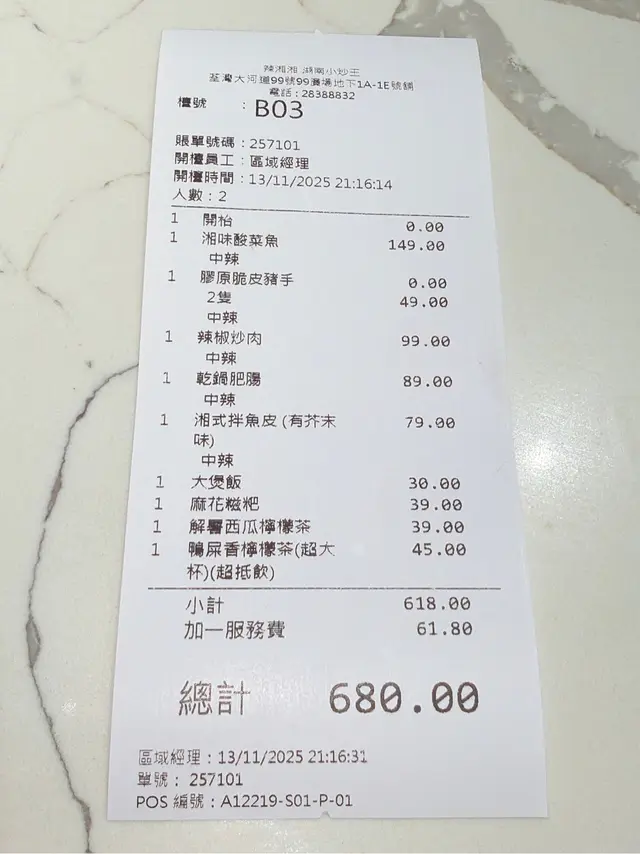 辣湘湘 小炒湖南菜 (Tsuen Wan) URL: https://s.openrice.com/QrKS0yUw600 Add.: Shop 1A-1E, G/F, 99 Plaza, 99 Tai Ho Road, Tsuen Wan, Hong Kong Tel.: +852 28388832