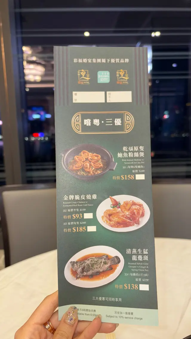 迎海皇宴 (Tsim Sha Tsui) URL: https://s.openrice.com/QrKS0zCE7W0 Add.: 22/F, iSQUARE, 63 Nathan Road, Tsim Sha Tsui, Hong Kong