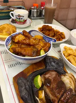 今日終於來到bookmark 咗好耐的尖沙咀的保頓冰室。呢度港式情懷冰室嘅裝修真係好啱打卡,仲播住八九十年代嘅歌曲,好有懷舊feel。鐵板餐 C:紐西蘭西冷牛扒這個鐵板餐絕對是冰室必點項目,當侍應端上那滋滋聲的鐵板再淋上黑椒汁,那股香氣撲面而來,儀式感滿滿。牛扒點了七成熟,切開後內裡好juicy,肉質軟嫩有嚼勁,不會像其他茶餐廳般用梳打粉拿到冇晒肉味。薯菜絕不馬虎,懷舊波浪薯條,即炸香脆,沾上醬汁非常美味。晚餐 D:拔絲咕嚕脆雞一上桌就被其亮麗的光澤吸引,脆雞夾起時真的能拉出細長的糖絲。香脆外層的糖醋醬酸甜開胃,內裡的雞件保持著驚人的脆度,肉質嫩滑,口感層次極佳。懷舊G餐:京都豬扒豬油撈飯豬扒炸得金黃酥脆,裹上酸甜的京都汁加上洋葱,開胃惹味。將豬扒夾到另外的碗仔,將豬油和豉油淋在熱飯上,簡單拌勻,豬油香氣爆炸,每一粒米飯都變得油潤甘香,超邪惡美味。紅豆沙套餐附送的紅豆尚算煲得起沙,絕不馬虎,甜度適中。馳名菠蘿油 吃冰室怎能沒有菠蘿油?即叫即製,菠蘿包外皮酥脆到一碰就掉渣,麵包身鬆軟,夾在中間的厚身冰鎮牛油鹹香濃郁,一口咬下好滿足。熱杏霜懷舊飲品之選!沖調得比例剛好,杏霜的香甜與奶香完美融合,口感順滑。凍阿華田我地揀了少甜少冰,阿華田味道香濃。…Read More