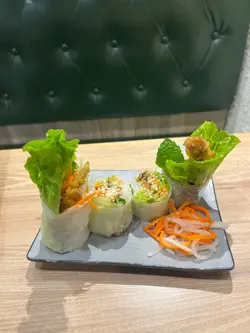 尖沙咀重慶大廈地庫慶坊的 Ha Noi越南菜,凡惠顧湯粉、撈檬、飯類,可追加小食一款,亦可以優惠價加配各款飲品。 魚露雞扒撈檬,爽口檬粉配搭烤至金黃色的雞扒,肉質嫩滑,魚露醬汁酸中帶甜,與新鮮蔬菜絲完美融合,清爽不膩。越式河內三寶飯,集三款精選配料於一碟:雞翼炸得香脆,豬扒外焦內嫩,帶有獨特炭香,再配上越南扎肉,層次豐富,令人食指大動。越式炸蝦餅,外皮酥脆,蝦肉鮮美。越式豬頸肉,則以香料醃製,口感彈牙,香氣四溢。越式豬扒包,法包外脆內軟,夾住爆汁豬扒、酸甜醃菜及香草,口味平衡,麵包控必試。椰汁珍多冰,椰香濃郁,搭配彩色珍多,冰涼消暑。蜂蜜柚子梳打,酸甜清爽,氣泡感十足,是完美的解膩選擇。整體感覺,餐廳食物美味,選擇多元化,價錢實惠,尖沙咀平食之選。…查看更多