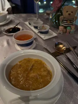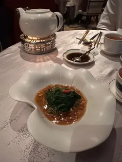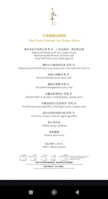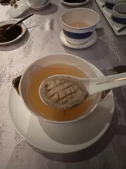 After the news of someone paying more than $80k for dinner at this restaurant, Man Wah has become the talk of the city. As a regular patron, we come today not because of the hype, but knowing Chef Wong is retiring soon, it is important we can visit and enjoy his culinary skills one more time.Seated at the same table we have always taken, we start with Barbecued Iberico Pork Loin, Longan Honey 蜜味西班牙黑豚肉叉燒 ($325). The BBQ pork is truly amazing, with the meat very tender and juicy, without needing to add the gravy. The pork is of a thick cut but the texture remains soft, with the glaze using local longan honey, which has a more floral note and less sweet.Next, we have Baked Green Crab Meat, Matsutake Mushroom, Cheddar Cheese 芝士松茸焗釀蟹蓋 ($328 each). The chef has used fresh Yunnan matsutake mushroom to cook with crab meat, cream, onion, and white wine, finishing with Cheddar cheese. Both the delicate crab meat and fragrance of mushroom can be highlighted without one masking another. The cheese also does not overpower the flavours, really a nice change to the traditional recipe.Then comes Braised Abalone and Chicken Casserole 文華鮑魚滑雞煲 ($368 each). Using tealight to keep the casserole warm, the abalone is braised nicely, soft on the bite, gluey inside with great flavours. The chicken pieces are also cooked perfectly, seasoned well and delicious. The dried tiger prawn supplemented more texture and savoury flavours, with a bit of spiciness from the chili, which adds wonders to the taste.Instead of more meat, we have opted for Sweet and Sour Shiitake Mushroom 菠蘿咕嚕脆香菇 ($298). The chef also has hawthorn juice to prepare the sweet and sour sauce, with a better balance. The mushroom pieces are deep-fried to a crisp surface while keeping tender and moist inside, with the fresh pineapple appetizing. Finishing the dish there is no puddle of sauce on the plate, a great example to demonstrate how to make this dish right. Following is the highlight on the night, the pre-ordered off-menu item, Sole Casserole Rice 順德醬油方脷焗飯 ($552). The fillet of the large sole is cut into shreds, half-cooked before putting on top of the rice to cook together, ensuring the rice can absorb the flavours from the sole to the full. Adding a bit of aged tangerine peel to increase the fragrance, the plenty of chopped spring onion further enhances the aroma. It is so good we finish the whole portion and frankly can even finish more if available.For dessert, I have Almond Cream, Egg White, Sesame Dumpling 蛋白杏仁茶湯丸 ($128) while my wife has Red Bean Cream, Aged Tangerine Peel 遠年陳皮紅豆沙 ($128). The almond cream is prepared using three types of almond, to make it rich and flavourful, while the sesame fillings of the dumpling are not too sweet. The red bean cream is also delicious, very fragrant from the aged tangerine peel used.The complementary Petits Fours include Pea Cake 豌豆糕, made from pea powder, adding sugar, persimmon, and other ingredients to make a soft, delicate dim sum. The other piece is Egg Biscuit 雞蛋餅, with the rich egg flavours permeating the crunchy biscuit. Both of them are appropriate in sweetness. A real treat to finish the meal.Service is very good, with all the staff very friendly, attentive, and eager to explain the dishes and helpful in making recommendations. We also appreciate tremendously their manager helping us to pre-order the casserole rice beforehand. The bill on the night is $2,725 which is reasonable in my opinion considering the quality of the food. It is definitely a restaurant not to be missed.…Read More