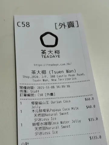 茶大椰「茶大椰」甜品茶飲店終於開喺荃灣愉景新城2樓,呢間甜品茶飲店係以泰國新鮮椰子做主題,用咗純天然嘅椰子做椰凍、椰子茶、鮮椰乳、鮮椰咖啡等甜品飲品,佢哋強調一定係低卡低脂,食完飲完完全唔覺得有負擔添!1.椰皇貓山王$58(10/10)呢個椰皇貓山王入面椰子味奶凍,奶凍好q彈,上面仲鋪滿咗貓山王榴槤果肉,榴槤果肉上面就鋪滿咗椰絲同脆脆,估唔到椰子同榴槤果肉係咁夾嫁,最後連椰子入面嘅椰肉都食埋,好味到不得鳥!2.抹茶生椰乳$42(10/10)呢個抹茶生椰乳個抹茶味好香濃,抹茶帶少少苦澀味,生椰乳好q彈,可以用吸管吸嚟飲,又可以用匙羹食,真係正!3.芒果小椰凍$25(9.5/10)呢個芒果小椰凍個芒果果肉都唔少,椰凍好q彈,唔甜唔錯!2人總共價錢$125個人口味總評分:9.83/10 @teadayehk @dparkhk 地址:荃灣青山公路 - 荃灣段398號愉景新城2樓2020號舖Please follow me🙆♂️ @wheelchaireatinhongkong 如果鍾意我嘅分享,麻煩請follow我,仲有記得Like同Share!🙏🏻🙇🏻♂️#茶大椰 #荃灣好去處 #荃灣美食 #dpark #愉景新城 #甜品店 #茶飲店 #香港美食 #hkfoodie #hkfoodblogger #hkfoodpic #hkfoods #hkfoodshare #dessert #hkdessertshop #food #hkfoodstagram #hkfoodpic #hkigfood #foodiehk #yummy #delicious #foodie #hkfoodieblogger #hkfoodies #wheelchaireatinhongkong…查看更多