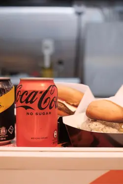 Black Truffle Scallop Beef Burger that’s straight fire🔥 Meaty beef patty stacked with plump scallops and drenched in that intense black truffle sauce — smells like pure petrol⛽️ luxury in the best way😻 Crispy-on-the-outside, fluffy-inside hash browns🥔 (fried fresh!!) and a fizzy drink make this set ridiculously filling🥤 Layers on layers of umami, bounce, and crunch🍔
