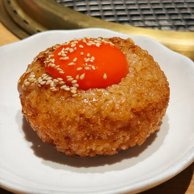 ▪️月見夢王蛋黃醬燒飯糰:飯糰燒到有飯焦,戳穿蛋黃撈勻食幾香滑。