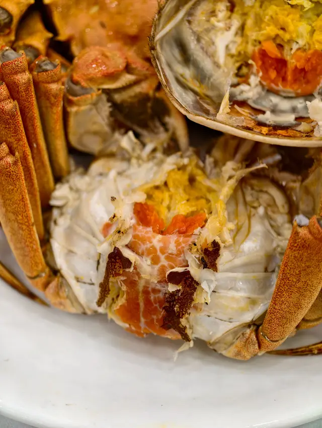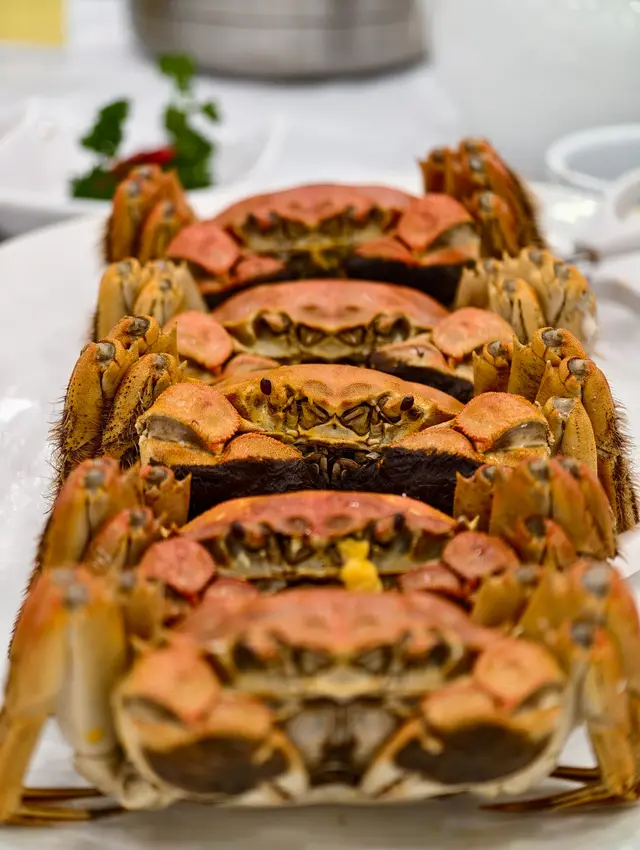 少有的一次給你5隻大閘蟹,雖然個頭不算很大,母的應該3兩左右,公的會大一點,但膏都很足,吃起來很滿足的!母的膏甘香,公的膏軟