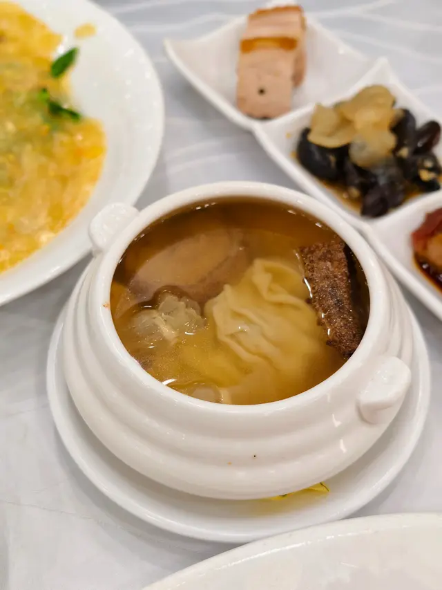灌湯餃大大隻,而且挺足料的,有花膠,海參,鮑魚和素翅,湯的海鮮味香甜。餃的餡料有蝦肉,蟹柳,豬肉和木耳等材料,挺足料的。