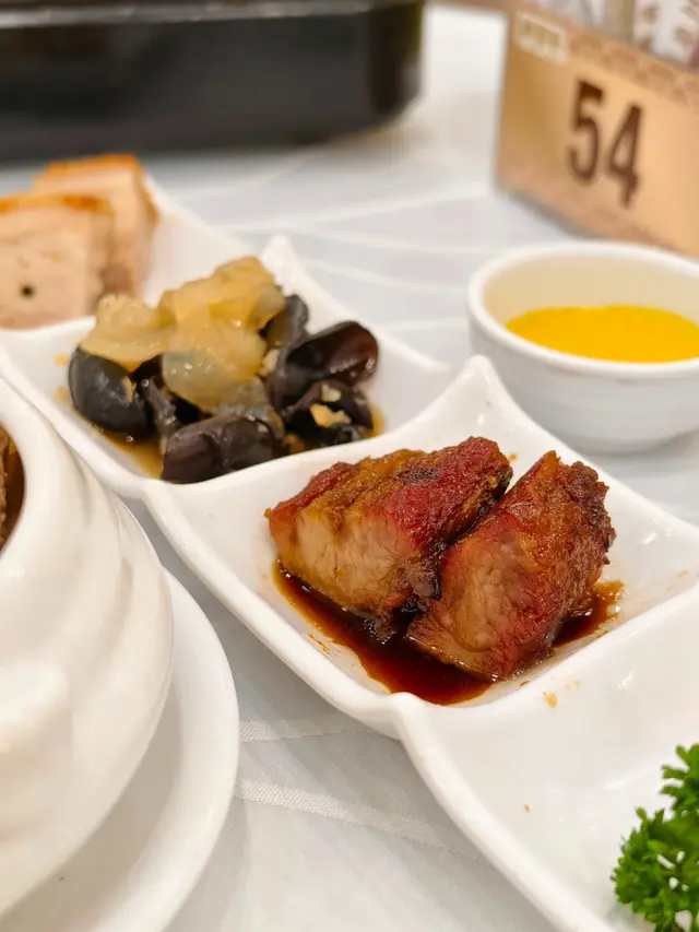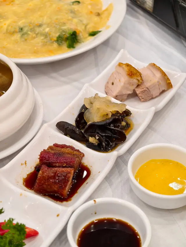 有酥脆的燒腩仔,蒜香酸甜的海蜇木耳和蜜汁叉燒,份量不錯。