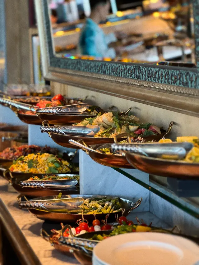 一入餐廳的門口就可以看到色彩繽紛的甜品區,有小朋友最愛的朱古力噴泉配棉花糖和士多啤梨🍓 甜點有雪糕、芝士蛋糕、朱古力蛋糕、馬卡龍、泡芙、拿破崙、Panna Cotta等等,還有必食的tiramisu 🤤 不嗜甜的可以品嘗水果拼盤,有西瓜、火龍果、密瓜、莓果等~非常滿足🫶🏻
