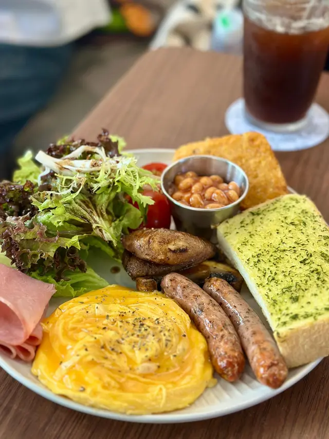 幾豐盛,食材望落去新鮮特別係沙律菜!明治牛乳炒蛋好嫩滑,有奶香,可配蒜香多士食。但蒜香多士就普通左D,通常我都會好期待個麵包/Bagel。仲有其他食材:牛油菇、火腿、日式豬肉腸、薯餅、茄汁豆。整體都係好食,份量唔錯!