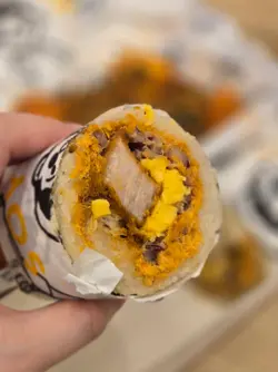 一口咬下,粢飯的糯米米粒緊實不黏牙,包裹著彈牙豬頸肉🐷、滿滿肉鬆、榨菜🥬、現炸油炸鬼、玉子🥚等餡料,層層堆疊,酸辣醬汁鮮明惹味,意外地合拍,整個粢飯鹹香中帶微辣🌶,好味又飽肚👍🏻