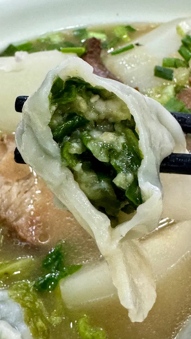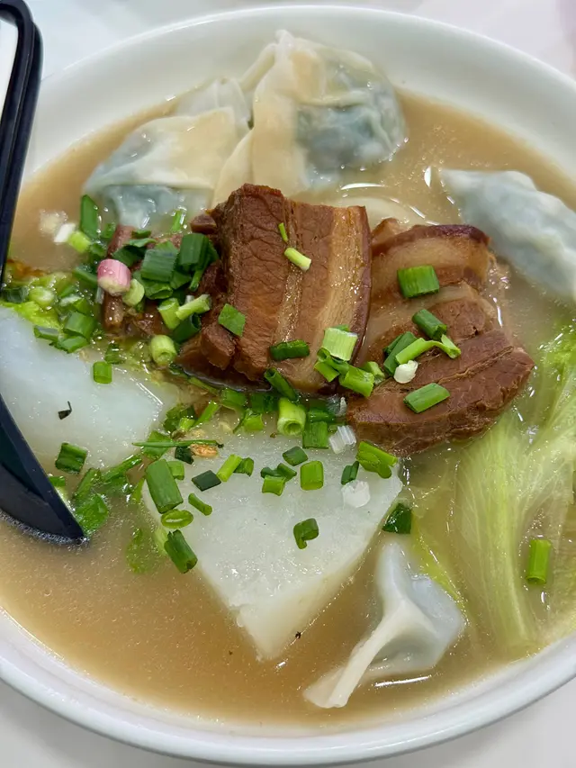 $49「韭菜水餃」加「蘿蔔(+$10)」加「東坡肉(+$10)」:「韭菜水餃」大大隻裏邊充滿切碎咗嘅韭菜🤣,「蘿蔔」大大件炆煮得好腍🤣;「東坡肉」有大件有細件都係炆煮得好腍🤣