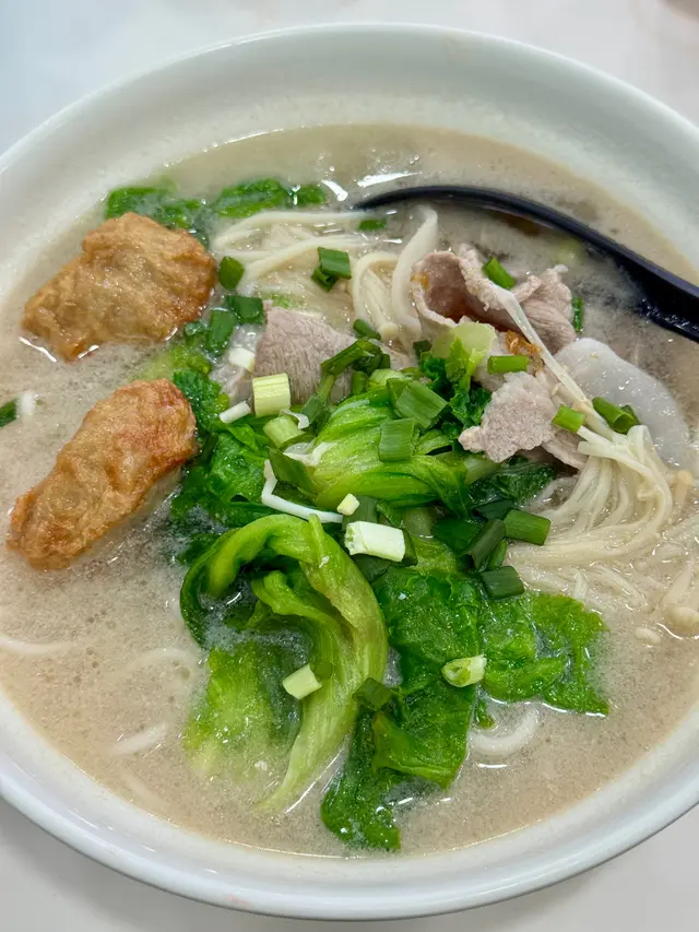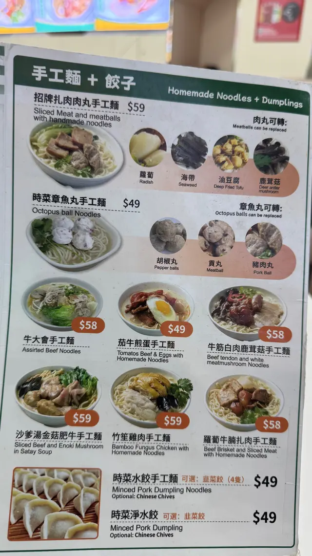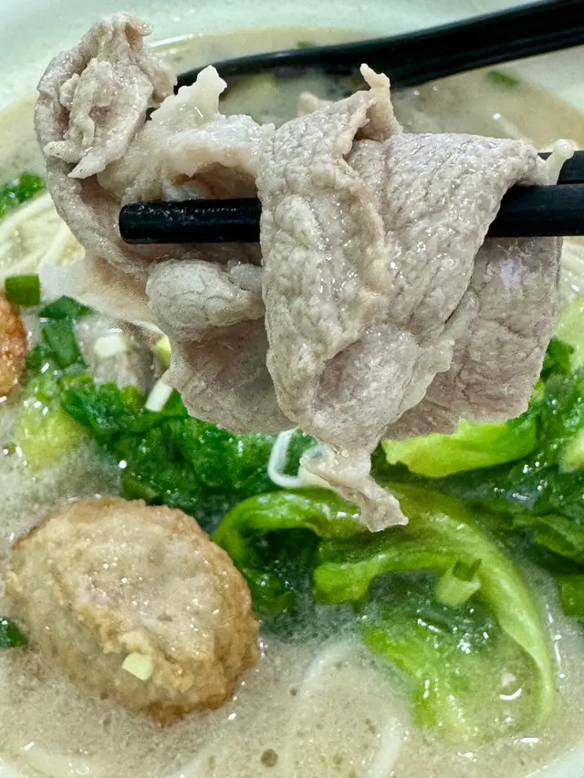 $59「肉丸黑毛豬手工麵」:豬肉片30%脂肪70%瘦肉所以好甘香🤣;豬肉丸炸過外皮有少少煙靭仲幾香口🤣;手工麵煮得腍腍哋🤣