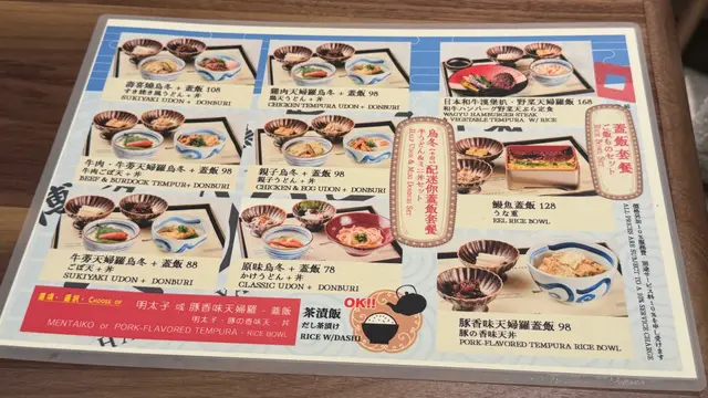 套餐包括壽喜燒烏冬、明太子蓋飯,一次過品嘗不同的主食,湯底甜甜的,烏冬和牛肉吸收了湯底的精華,明太子包著白飯吃,中和了明太子本身的鹹味,小食分別有秋葵醃物、紅蘿蔔漬物。