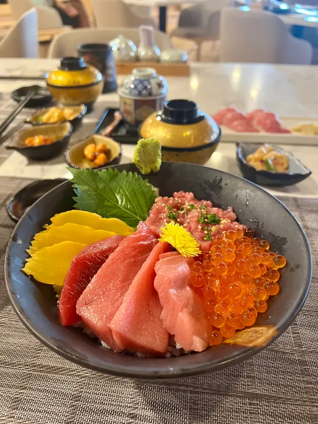 一個丼飯中有哂吞拿魚的赤身、中拖羅、大拖羅,吞拿魚蓉和三文魚籽,一次過可以品嚐到不同口感和風味的吞拿魚,最重要係款款新鮮,非常出色。