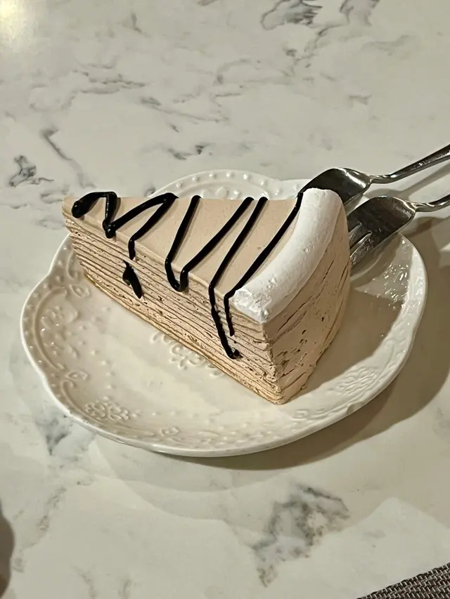 最後,以千層蛋糕作結。蛋糕口感輕盈,搭配著淡淡的伯爵茶香,又不過於甜膩。