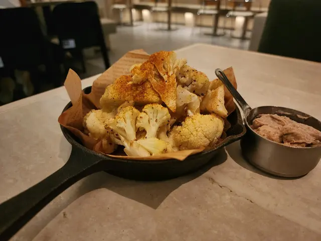 牛油椰菜花配金槍魚醬 椰菜花煮得軟硬適中 加左甜椒粉做點綴 重點係金槍魚醬好好味。 而且份量好多…最後椰菜花食完就直接用匙羮𢳂黎食