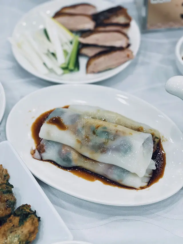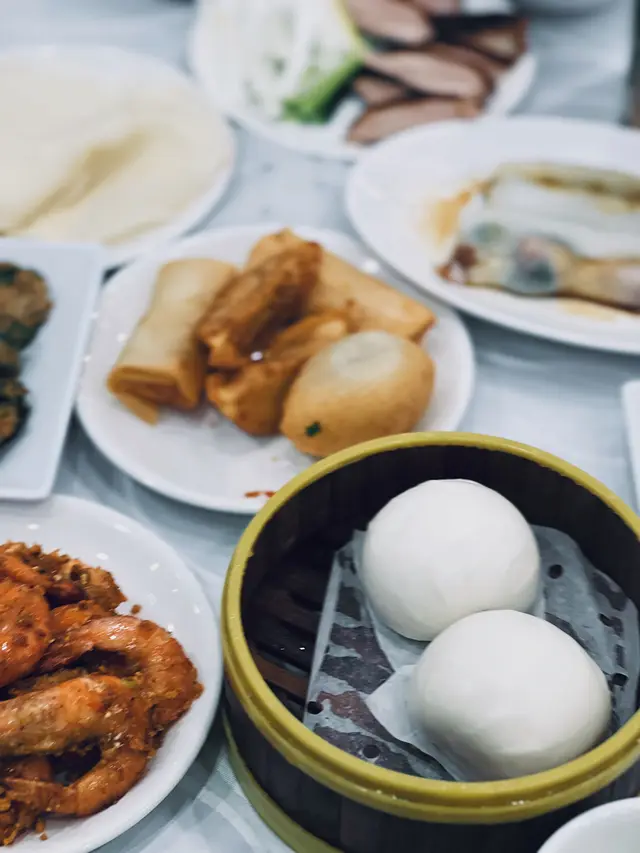 講到回本位,一定係大堂個自助吧!焦點所在既即切金陵片皮鴨🦆,師傅係面前即切,真係熱辣辣上枱🔥。最讚係refill得勁快,完全吾使同人搶,真係無限任食,我地都食左五六次,皮脆肉嫩!另外仲有多款精美小食,好似炸牛奶🥛、炸餃子、春卷、炸油條、鹹水角、港式炒飯等等。特別推介個避風塘蝦🦐,勁入味又惹味,我地encore左幾次。仲有蘿蔔牛腩、鮑汁鳳爪同薑汁紫薯糖水,食到停吾到口。