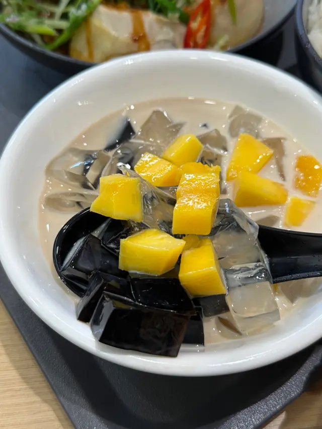 芒果涼粉係配黑白涼粉,好適合夏天食,清清爽爽解暑!