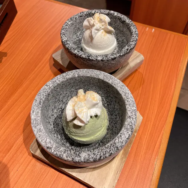 還有餐廳的和風雪糕,我們選了牛乳和綠茶口味,味道非常純正,而且盛器都是很冰冷的,雪糕不易溶,雪糕底部還有一些紅豆蓉,有驚喜,讓人一試難忘。