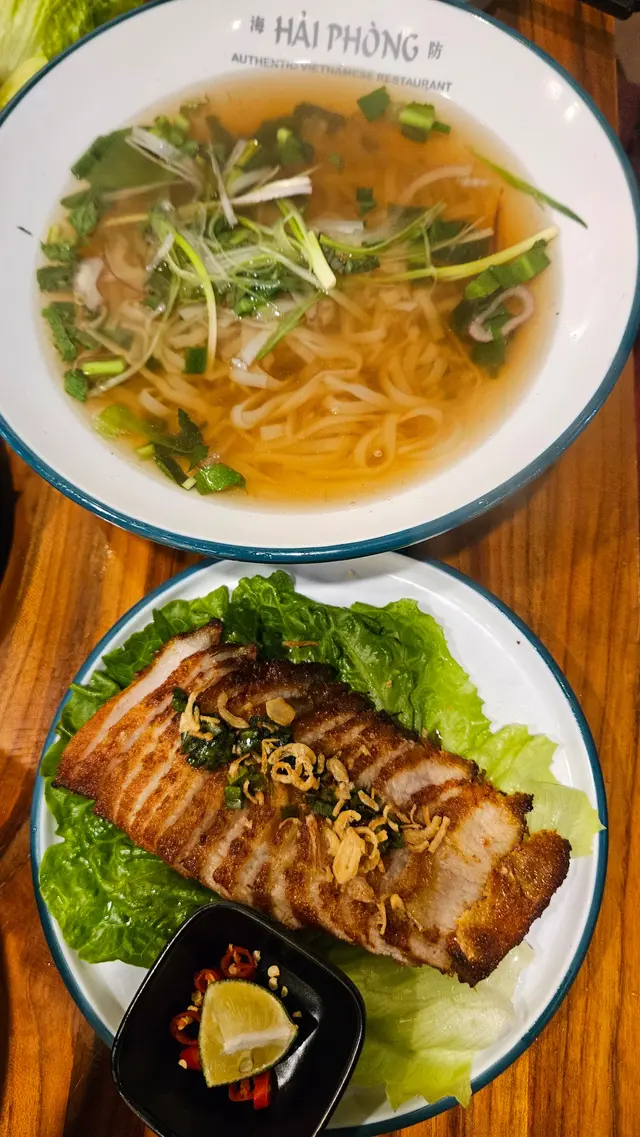 很有越式風情和美味 sunsum9806Level 42025-12-05 Follow 餐廳環境很有越式特色,墻上是一幅鮮艷熱烈的南洋風情畫,瞬間將人帶往遙遠的河內街頭。越式拼盤金黃酥脆的春卷,裡面還有蝦肉鮮甜彈牙,加上醬汁後酸甜鹹鮮在口中炸開。雞翼醃得入味至骨,外皮焦香,肉汁被完美鎖住!扎肉口感緊實!香茅豬扒香茅的香氣完全滲入,與醬油、蒜蓉等醃料融合,形成濃郁的東南亞風味。入口先是香茅的清新,繼而是豬肉的鮮美與軟嫩,外脆內軟!越式豬頸肉湯河熱氣蒸騰的湯河,豬頸肉邊緣微焦,口感脆嫩,帶著炭火的香氣,與柔滑的河粉形成絕妙對比!牛丸湯河牛丸緊實彈牙,肉香十足,每一顆都飽吸了湯汁的精華!The above review is the personal opinion of a user which does not represent OpenRice's point of view.LikeShare很有越式風情和美味 海防 https://s.openrice.com/QrKT0h7bV00Report Post Ratings5Taste5Decor4Service4Hygiene5ValueDining MethodDine In
