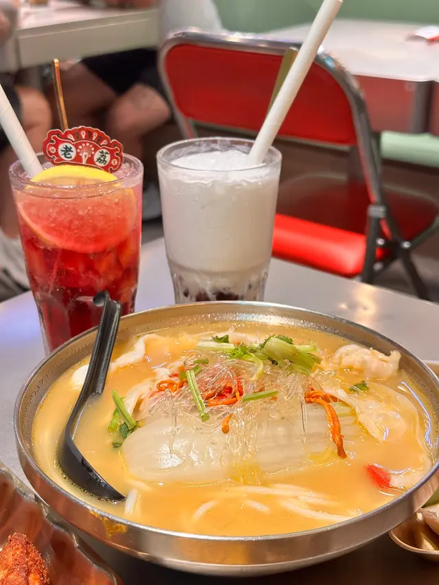 蝦餅小棠菜又幾有特色,而且炸到好香口,呢個可以揀酸辣湯/麻辣湯,佢係分開上咁就唔會浸到林曬😌