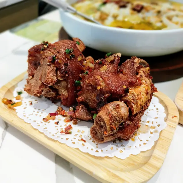 豬手炸到外皮勁脆,咬落係滿滿骨膠原嘅感覺,個脂肪位勁好食🤤本身已經滷得入味,再加上上面灑左辣椒薑蔥蒜等,令到味道層次提升,呢樣值得回味!