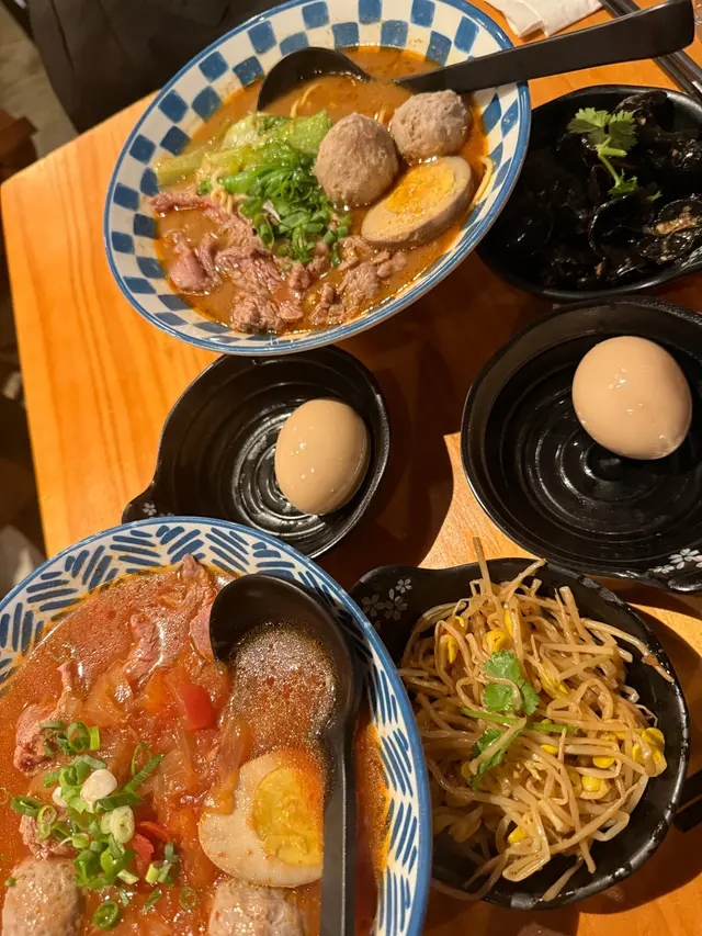 配料都絕唔馬虎,麻辣雲耳爽脆酸辣好過癮,溏心蛋流心效果完美,蛋黃香滑帶酒香,涼拌大豆芽清新解膩。飲品配咗杯冬瓜茶,清甜冰涼,正好平衡返個濃味。