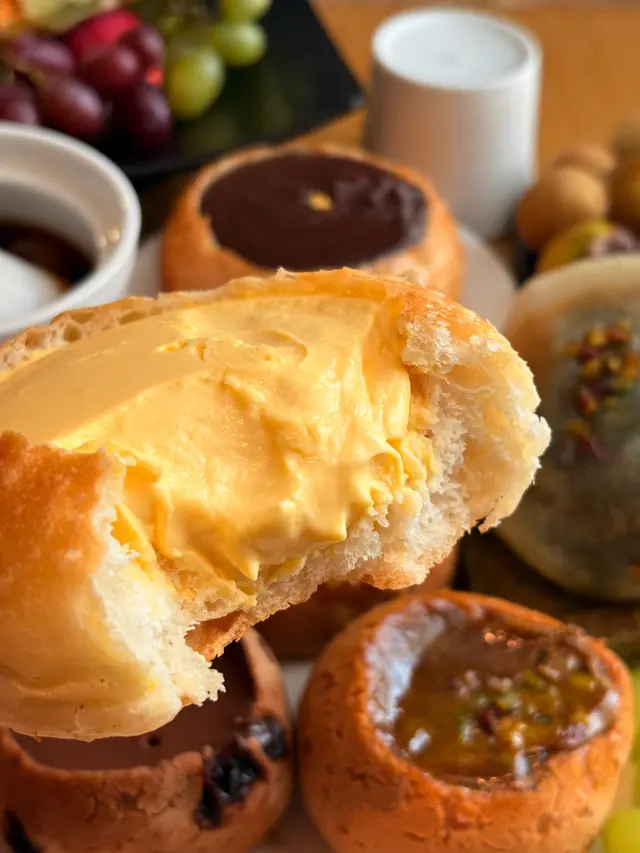 招牌布丁包 嫩嫩的 非常duang 像是蛋挞芯与布丁的结合🍮外皮比较韧 艮啾啾地兜住了内陷 有些甜 蛋奶糖油香气扑面而来🥛