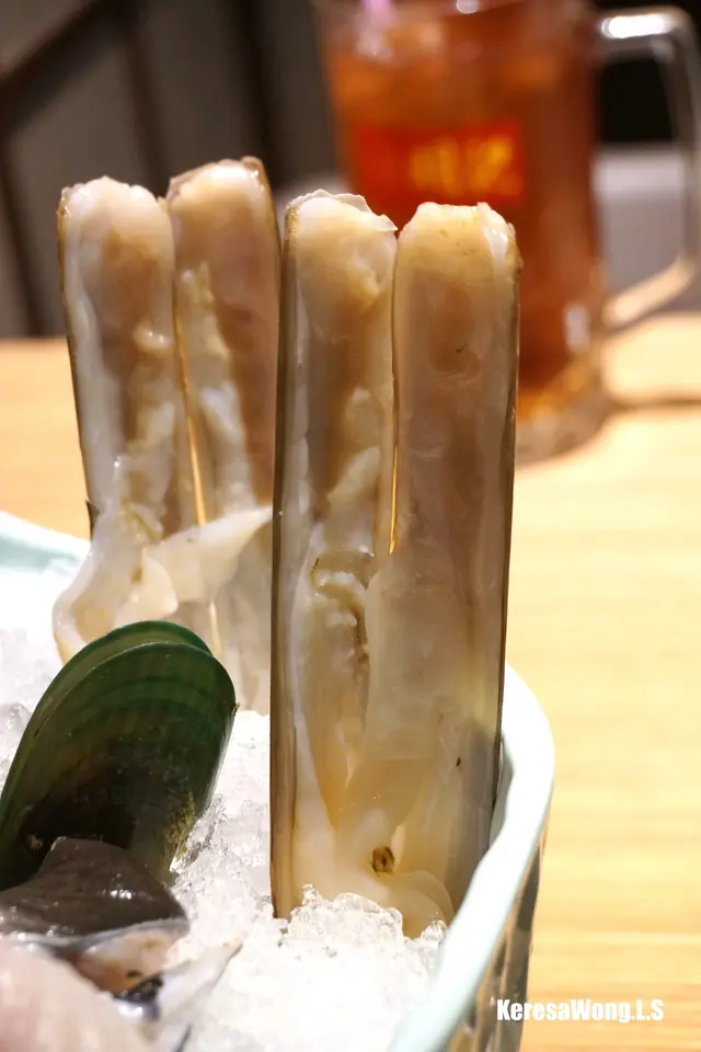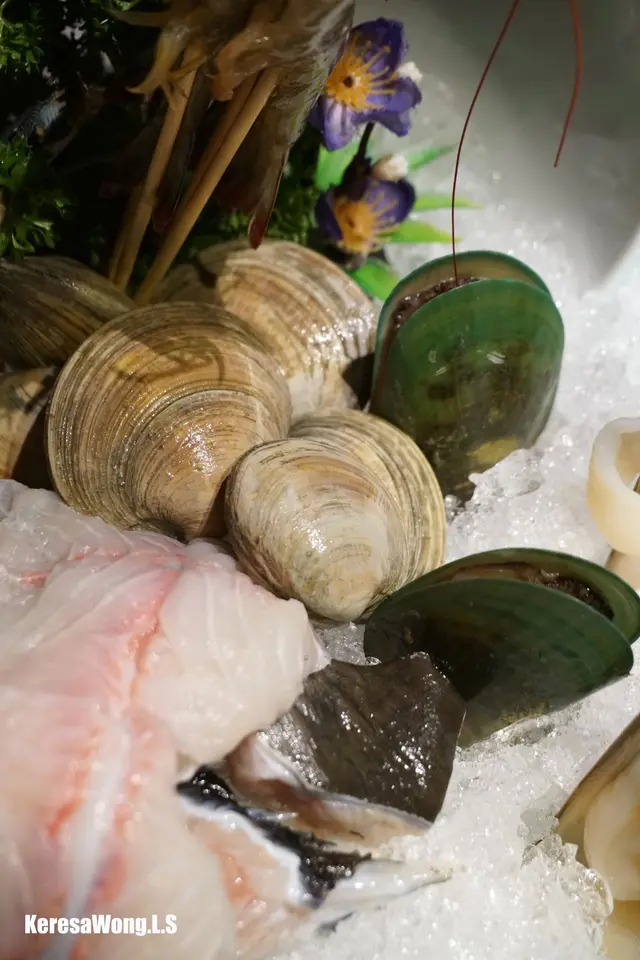而當中六款廚師發辦海鮮: 青口、白鱔片、沙白、花蛤、馬刀貝、基圍蝦。