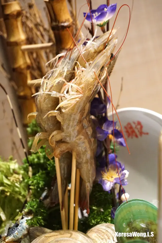 基圍蝦雖然有竹簽串住, 但蝦腳仍生猛郁動, 非常新鮮!