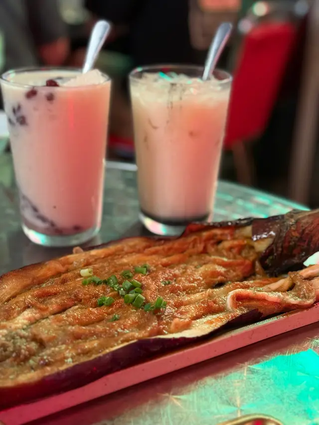 色澤金黃帶蒜香,茄子肉烤得軟腍入味,淋上醬汁再灑啲蔥花,非常惹味