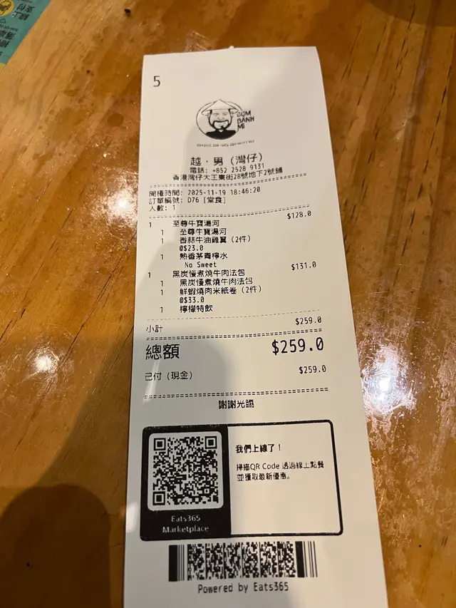 😋灣仔正宗老字號越南餐廳😋 zcbdkdjLevel 42025-11-1992 views Follow 灣仔越南餐廳老字號小店,今晚同朋友嚟食勻經典招牌款式至尊牛寶湯河,香濃嘅牛丸同牛肉,清甜嘅湯底,大旺青蔥同洋蔥,大滿足之選黑炭慢煮燒牛肉法包,竹炭包香氣撲鼻,脆卜卜好香口,牛濃軟腍嘅慢煮燒牛肉,滿滿嘅蘿蔔絲、青瓜同配菜,簡單調味清爽得嚟口感豐富鮮蝦燒肉米紙卷又彈牙又厚實,香蒜牛油雞翼酥香肉嫩香茅青檸水同青檸特飲都好開胃好解渴,清新之選枱面有齊晒唔同嘅調味料,好貼心1環境同佈置好靚,好有越南特色,好多擺設都係老闆喺越南搵返嚟,整體光猛乾淨,餐牌提供嘅選擇都好吸引,期待下次再嚟The above review is the personal opinion of a user which does not represent OpenRice's point of view.LikeShare😋灣仔正宗老字號越南餐廳😋 越.男 https://s.openrice.com/QrKT0SKHV00Report Post Ratings4Taste4Decor4Service5Hygiene4ValueDining MethodDine In