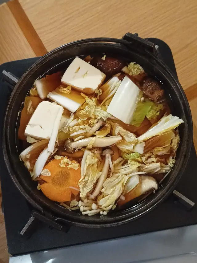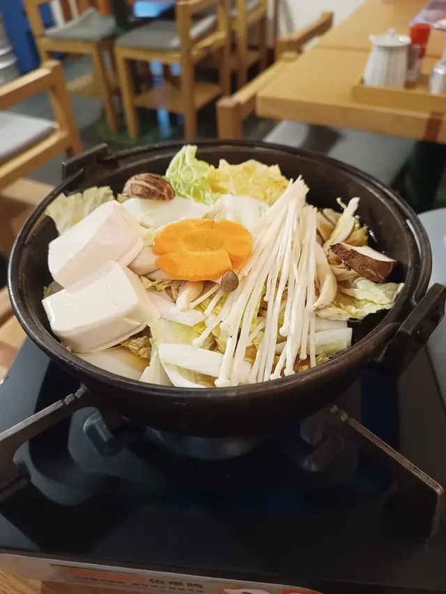 日本野菜如大白菜、金針菇與蒟蒻粉絲,吸飽湯汁後口感清爽,與牛肉形成鮮明對比。豆腐則柔嫩細緻,在鍋中慢煮後吸收了壽喜燒的醬香,成為低調卻不可或缺的一角