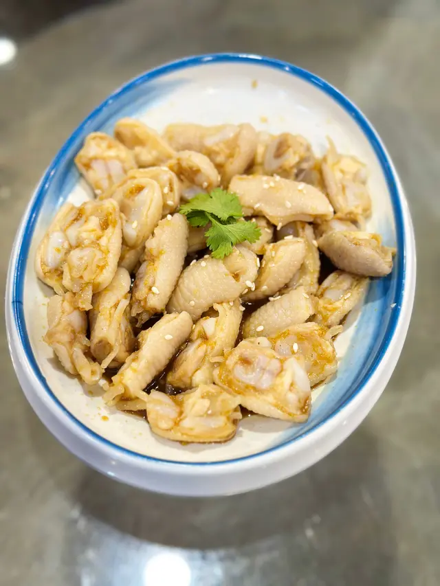 青芥末雞腳筋 : 雞腳筋口感爽脆彈牙,膠質感重,再配埋自家製青芥末醬汁,入口味道辛香,夠曬開胃嘅小食