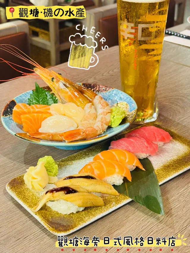 啱啱去完東京返黎,又心心念念掛住日本嘅野食,刺身壽司、串燒、壽喜燒呀,全部都係我嘅至愛,同埋朋友仔一邊食野一邊飲啤酒🍺幾咁chill😌喺觀塘返工嘅朋友仔就介紹咗我去海旁嘅一間日料店「磯の水產」,餐廳充滿日式風格,牆身貼上日本海報,擺咗好多日式嘅擺設、燈籠同清酒,每日嘅漁獲日本新鮮直送,重點係價錢好抵食👍🏻我地嗌咗個二人餐,包埋兩杯啤酒人均都只係$300👍🏻