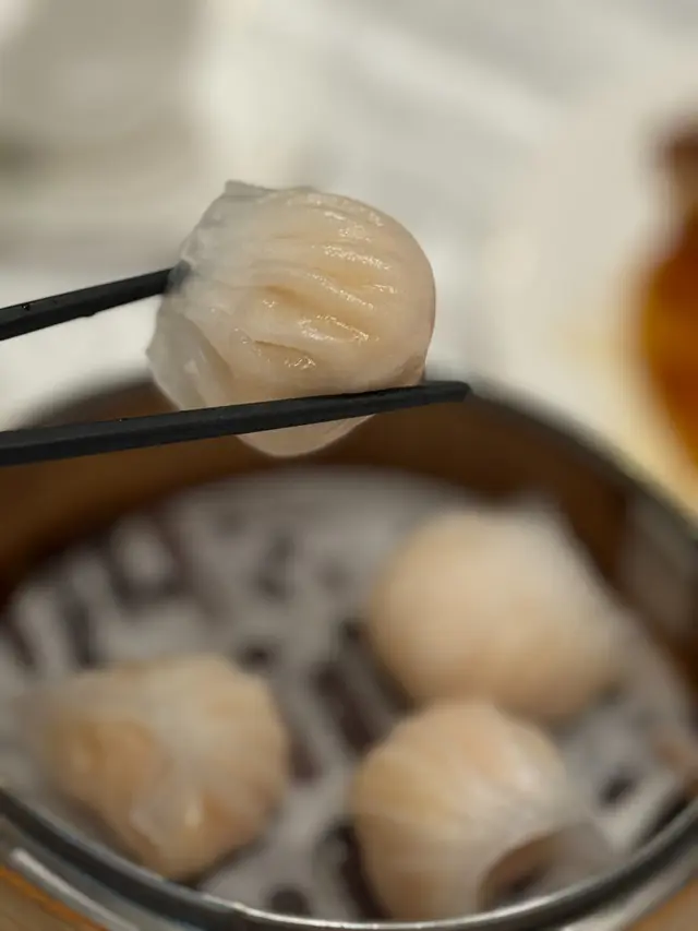 傳統點心考功夫。皮薄而煙韌,隱約透出裡面橙粉色嘅蝦仁。蝦餡飽滿爽彈,調味恰到好處,鮮味十足,係穩陣又高質之選。