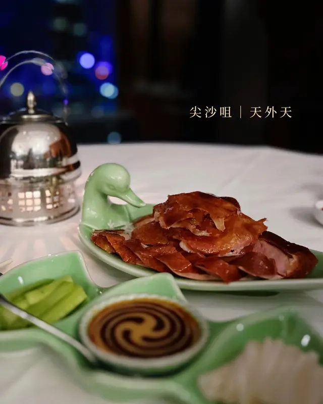 天外天嘅招牌菜🦆由店員席前片皮,並放喺碧綠色鴨形嘅碟上,不過擺盤有啲隨性,唔夠美觀。