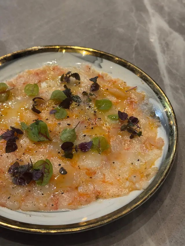 呢道菜絕對係藝術品!師傅將鮮甜嘅日本甘海老切成薄片,鋪砌成一朵花咁靚。上面灑上檸檬皮碎、黑椒,再淋上香氣十足嘅蝦油。一入口,甘海老嘅鮮甜同軟糯口感瞬間融化喺舌尖,蝦油將蝦嘅鮮味無限放大,而檸檬皮嘅清香就帶嚟一絲輕盈嘅氣息,令味道完全唔單調。每一啖都係大海嘅鮮味,有幸福感覺啊!😋