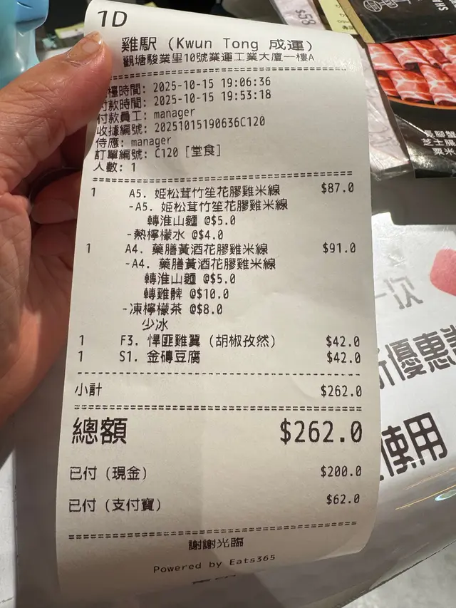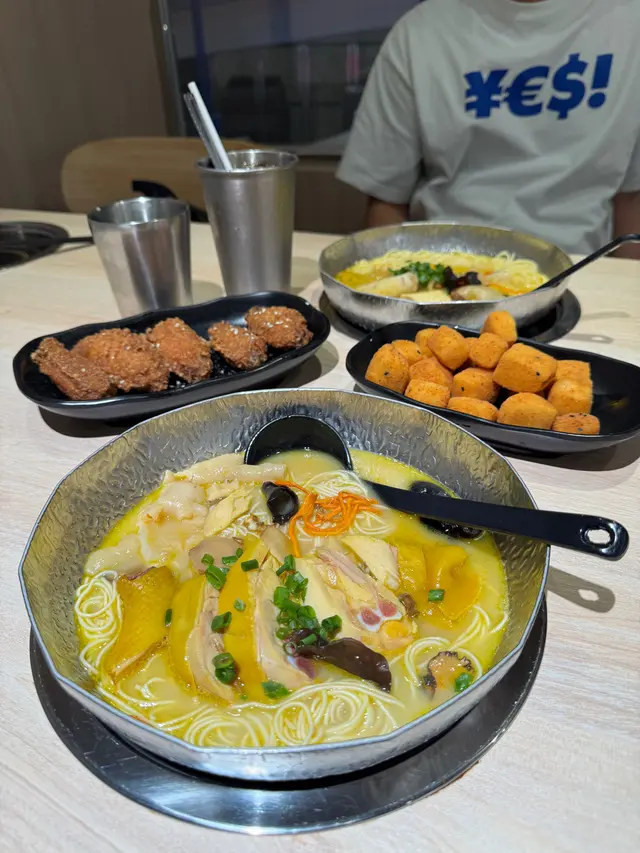 觀塘工廈隱世滋補湯麵 愛撞板女孩Level 42025-10-16113 views Follow ✨藏身觀塘工廈的暖心小店「雞駅」🐔以真材實料的花膠雞湯麵作主打,堅持每日用材料熬製無味精湯底,工業大廈內別有洞天,簡單裝修卻飄散著濃郁藥膳香,值得欣賞🤤 姫松茸竹笙花膠雞淮山麵$87🌟 姫松茸竹笙花膠雞淮山麵🍜湯底菌香濃郁,竹笙吸飽湯汁好入味👍🏽雞件多肉少皮健康之選😂淮山麵幼身滑溜👅藥膳黃酒花膠雞淮山麵$91🌟 藥膳黃酒花膠雞淮山麵🍜建議加$10轉左雞髀🍗雞肉嫩滑啖啖肉,藥膳溫補養生,黃酒香氣湯底濃郁,花膠滑溜中帶膠質黏唇😍悍匪雞翼$42🌟 悍匪雞翼🍗撒滿胡椒孜然,雞肉外酥內嫩,大大隻好有口感金磚豆腐$42🌟 金磚豆腐即叫即做熱辣辣,外脆內嫩,咬開豆腐軟滑感好吸引,一粒接一粒🫦💫最好呢間小店就係消費滿$200可以玩夾公仔機🧸好好彩夾一次就成功左🏅😜另外現場仲有羅漢果茶免費飲用,好貼心的小店💕311The above review is the personal opinion of a user which does not represent OpenRice's point of view.LikeShare觀塘工廈隱世滋補湯麵 雞駅花膠雞米線專門店 https://s.openrice.com/QrKT0y6cl00Report Post Ratings4Taste4Decor4Service4Hygiene4ValueRecommended Dishes藥膳黃酒花膠雞淮山麵$91悍匪雞翼$42金磚豆腐$42Date of Visit2025-10-15Dining MethodDine InSpending Per Head$130 (Dinner)