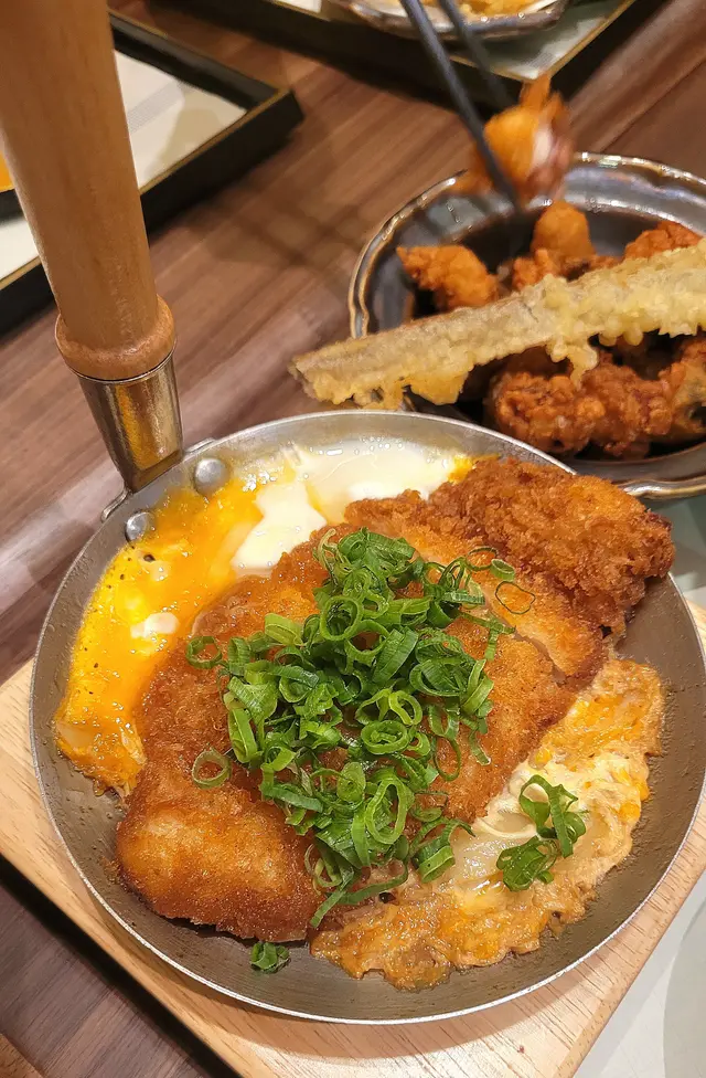 滑蛋吉列豬扒丼,豬扒吉列外脆內嫩,食落唔會乾柴;加滑溜溜嘅蛋同醬汁,微甜帶咸,襯托出豬肉鮮味。份量大,味道夠正宗日式家常,配飯食真係一流好送飯。
