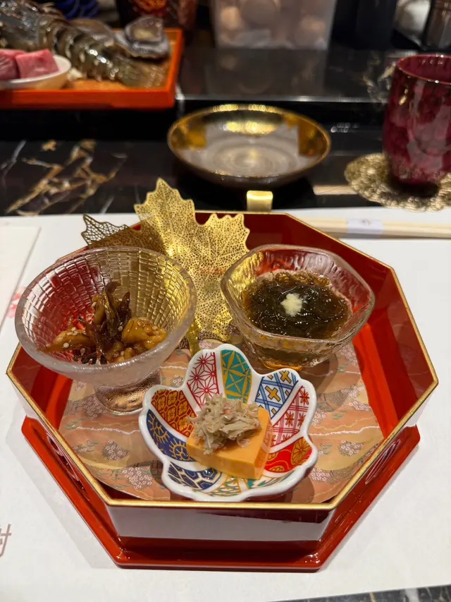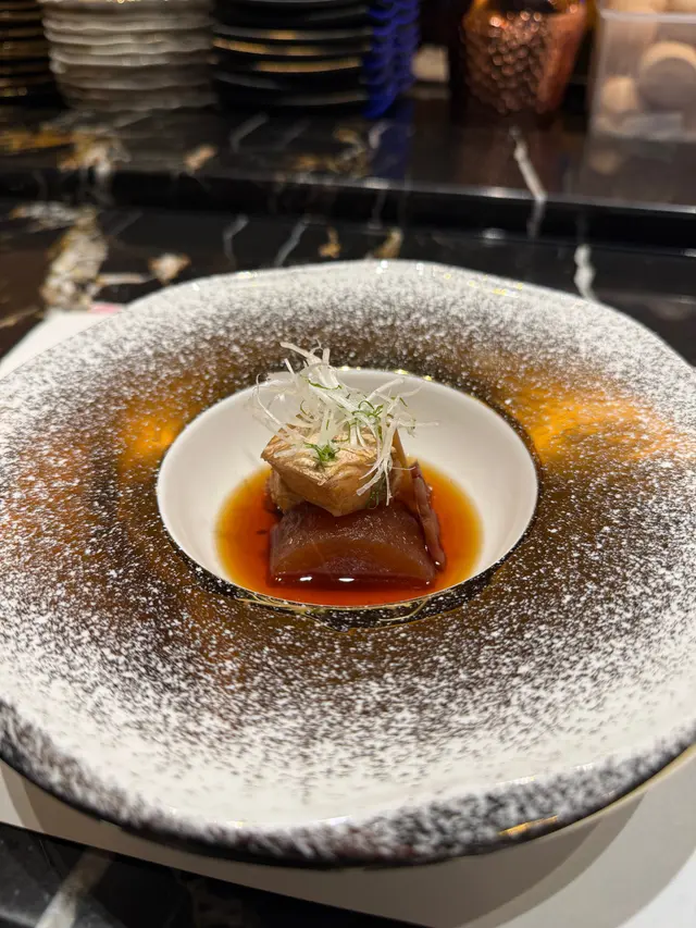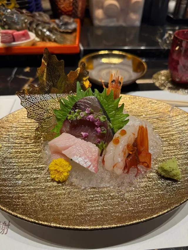 紧接着的 海膽豆腐配毛蟹肉 是一道惊喜,海膽的鲜甜与豆腐的滑嫩、毛蟹肉的丝丝鲜味融合,口感层次非常丰富。刺身 的新鲜度无可挑剔,虾肉清甜,油甘鱼肥美。